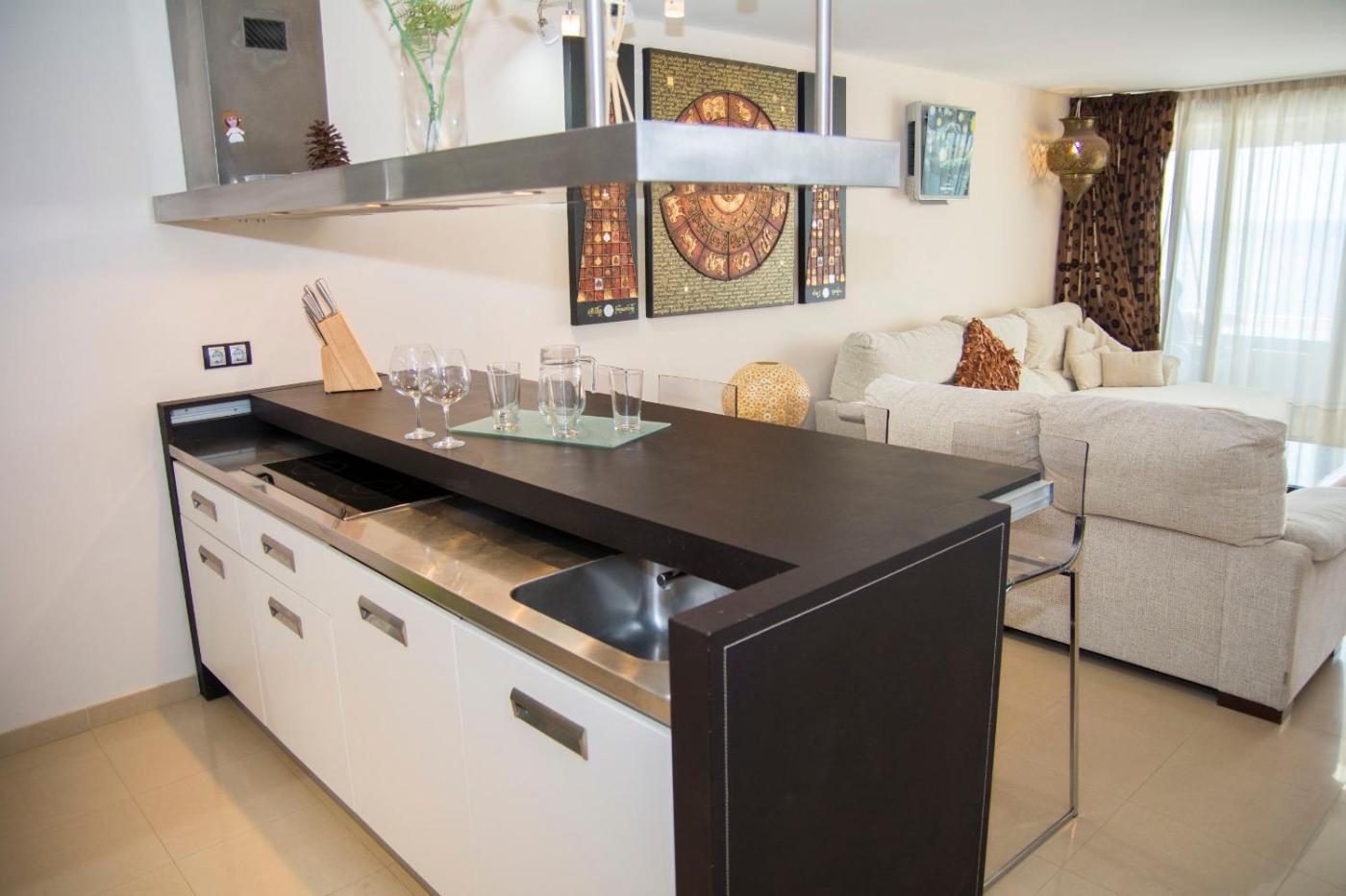 Apartamento con vistas al mar. This apartment features a pool with a view. This spacious apartment features 1 living room, 1 separate bedroom and 1 bathroom with a shower and free toiletries. Guests can make meals in the kitchen that has a stovetop, a refrigerator, a dishwasher and kitchenware. The air-conditioned apartment features a flat-screen TV with satellite channels, a washing machine, a tea and coffee maker, a seating area as well as sea views. The unit has 2 beds.