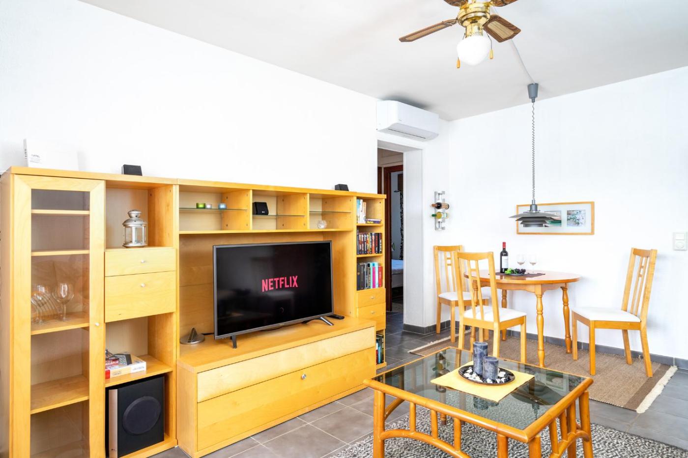 Apartamento de 2 dormitorios. This spacious apartment includes 1 living room, 2 separate bedrooms and 1 bathroom with a shower and free toiletries. Guests can make meals in the kitchen that is fitted with a stovetop, a refrigerator, kitchenware and an oven. The air-conditioned apartment offers a flat-screen TV, a washing machine, a private entrance, a tea and coffee maker as well as pool views. The unit has 2 beds.
