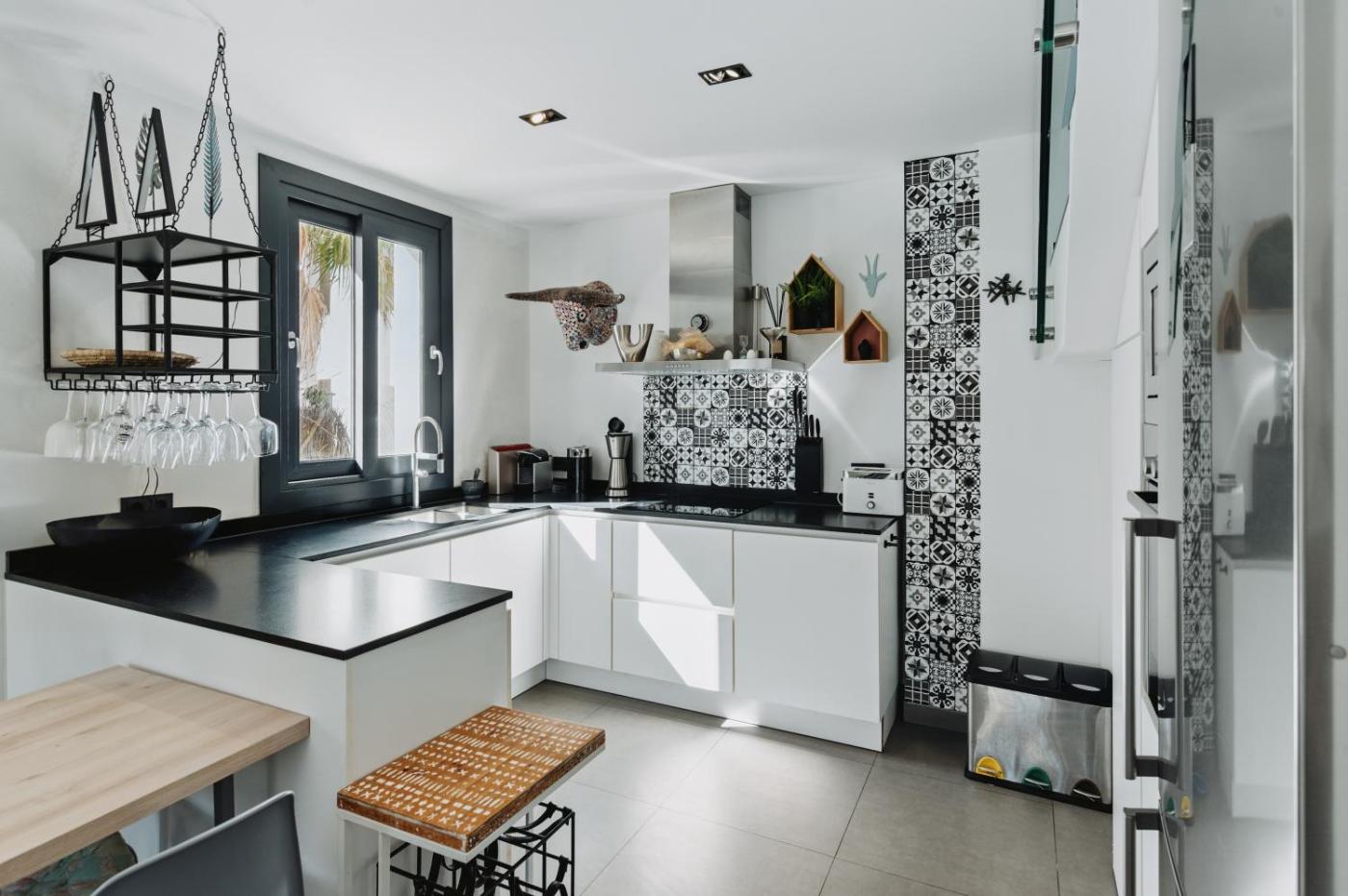 La villa dispone de 3 dormitorios, 3 baños, ropa de cama, toallas, TV de pantalla plana con canales vía satélite, zona de comedor, cocina totalmente equipada y terraza con vistas al mar.